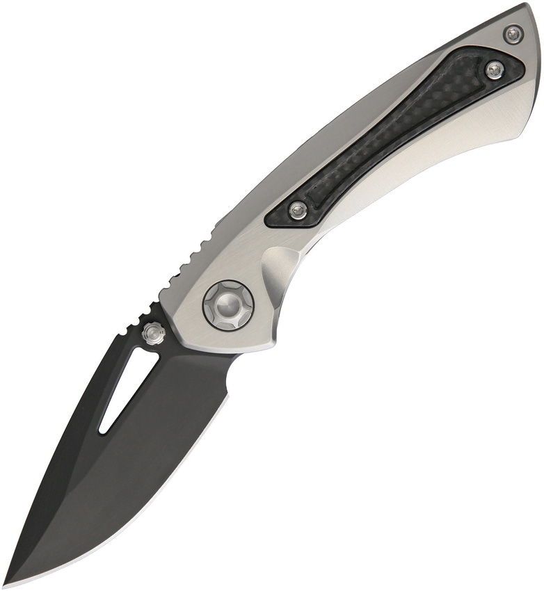4.88″ closed. 3″ black oxide coated CPM S90V stainless blade. Satin finish titanium handle with carbon fiber inlay. Thumb stud. Thumb pull. Pocket clip. Boxed.