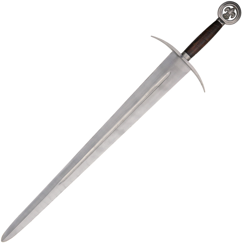34.5″ (87.63cm) overall. 26″ (66.04cm) unsharpened stainless blade. Brown wood handle. Steel guard and pommel. No scabbard. Boxed.