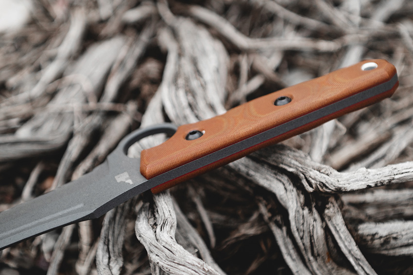 20.63″ (52.4cm) overall. 14″ (35.56cm) tactical gunsmoke gray finish 1095HC steel blade. Tan canvas micarta handle. Finger ring. Full tang. Lanyard hole. Black Kydex belt sheath. Bulk packed.