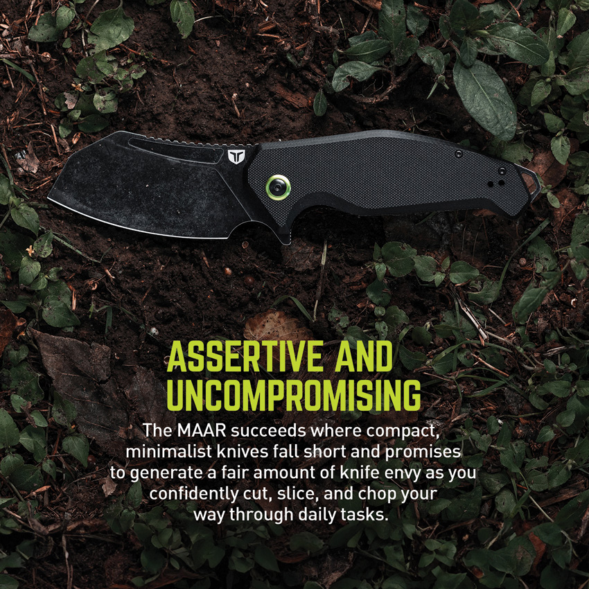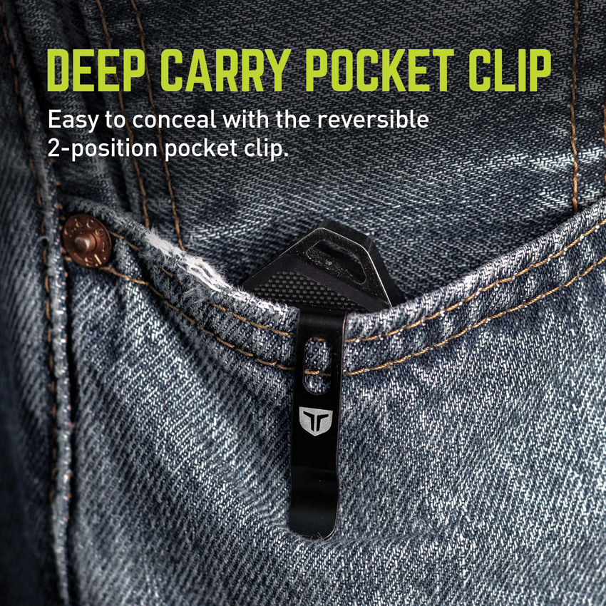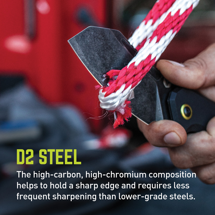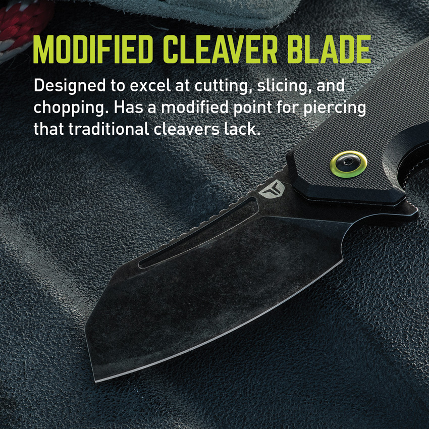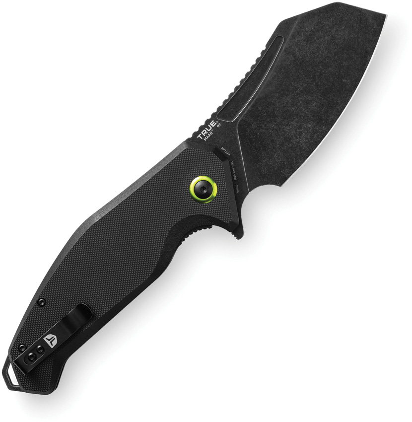 5.25″ (13.34cm) closed. 3.5″ (8.89cm) black stonewash finish D2 tool steel blade. Black G10 handle. Extended tang. Lanyard hole. Pocket clip. Boxed with hanging tab.